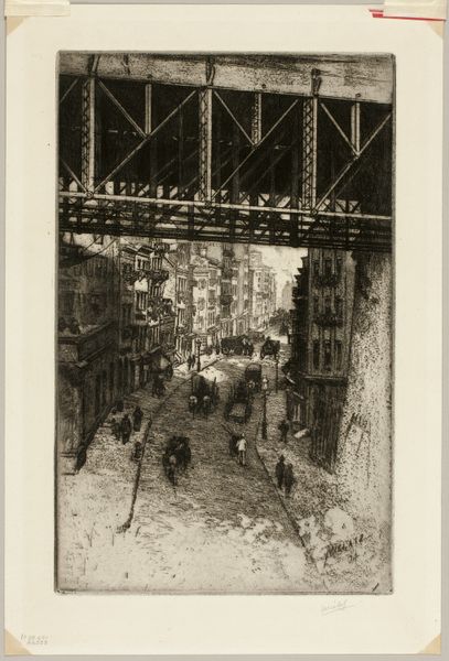 This is Viaduct, Coal Pockets, an etching made by Earl Horter in the early part of the 20th century. It looks like he really dug into that plate! The marks feel tentative, yet deliberate, like he was feeling his way through the scene. Horter's got this amazing way of capturing the gritty textures of urban life. Look at the layers of crosshatching, see how they create depth and shadow, almost like you could reach out and touch the rough surfaces of the buildings and the viaduct. The eye is drawn to the contrast between the solid, towering structure of the viaduct and the messy, chaotic coal pockets below. It kind of reminds me of Piranesi, but with an American accent. Both artists share that fascination with the monumental and the crumbling, the way the past haunts the present. But Horter's got a bit more rawness, a bit more grit. Ultimately, it's not about answers, but about the pleasure of looking, of getting lost in the maze of lines and forms.