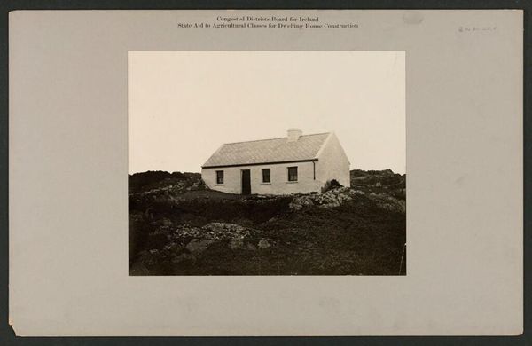 Editor: This photograph by Robert John Welch, titled "Housing, Improved," seems to depict an idyllic Irish homestead. The rows of crops in the foreground contrast with the simple house. What cultural messages do you see in this image? Curator: It's an image steeped in the symbolism of progress and aspiration. Note the title itself. "Improved" carries a heavy weight, implying a prior state of deficiency. The image romanticizes rural life, a visual tool used to promote state-sponsored initiatives, suggesting prosperity through orderly agriculture and stable housing. Editor: So, it’s not just a picture of a house. It's about conveying an idea of advancement? Curator: Precisely. The house becomes a symbol of upward mobility. Consider the family posed in the doorway, representing the beneficiaries of this "improvement." What emotions does that evoke in you? Editor: It feels like a staged presentation. Now I see it less as a simple snapshot. Curator: Indeed. The image invites us to contemplate the complex interplay of power, representation, and the enduring allure of a better life.