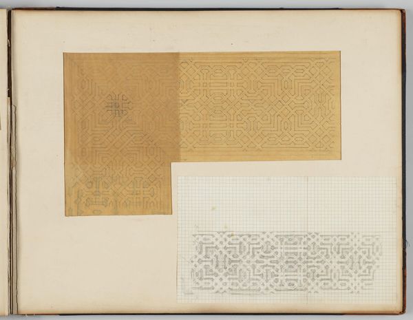 Editor: Here we have John Singer Sargent’s "Album Leaf with Two Drawings." The geometric patterns feel so precise, almost architectural. How would you interpret this work? Curator: Well, I’m drawn to the process itself. These aren’t spontaneous sketches, but careful studies. What social and material conditions allowed Sargent the leisure to produce these controlled designs? Editor: That's interesting! I hadn't considered the element of labor. Curator: Exactly! And consider the paper, the ink. Where did these materials come from, and what does their presence tell us about Sargent's practice and the broader art market of his time? What does it tell us about the value ascribed to preparatory work versus finished paintings? Editor: Viewing it through that lens makes me appreciate the tangible effort embedded in these drawings. Curator: Right, seeing the value beyond the surface.