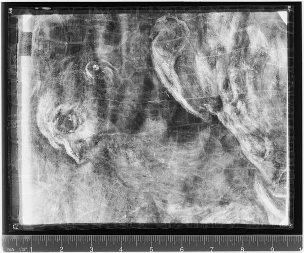 Curator: The Harvard Art Museums present this X-radiograph of "Unknown Man Standing," originally attributed to Gerritt Willemsz Horst. Editor: It's ghostly, isn't it? Like peering into the past, or even the subconscious. The figure is obscured, yet the form remains. Curator: Exactly. X-radiography reveals what lies beneath the surface, the artist's process laid bare. It lets us analyze the underpainting. Editor: And perhaps the social underpinnings. Consider the title: "Unknown Man." Who was he? And why was his identity lost to history? Curator: The lack of clear identity invites viewers to project their own interpretations, making him a symbol of collective memory. Editor: It makes you think about the power structures at play in portraiture and who gets remembered. Curator: Indeed. It's a powerful reminder of the hidden stories within art objects. Editor: It gives us new insight into how art is both enduring and subject to the whims of cultural forces.