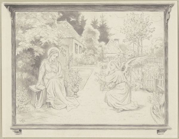 Philipp Veit made this drawing of Christ and Mary Magdalene, titled 'Easter Morning', sometime in the early 19th century. It depicts the moment when Mary Magdalene encounters the resurrected Christ. Veit was part of the Nazarene movement in Germany. This group of artists sought to revive Christian art by emulating the styles of the late Middle Ages and early Renaissance, before the perceived corruption of the High Renaissance and Baroque periods. They aimed to instill a sense of spiritual and moral purity in their work, which they felt had been lost. The Nazarenes often lived in monastic-like communities and saw themselves as artisans or craftsmen, downplaying individual genius. This ethos reflected their critique of the art academies and the commercial art world. In researching this artwork, one could look at the writings of early art critics like Johann Wolfgang von Goethe, who influenced the Nazarenes' ideas.