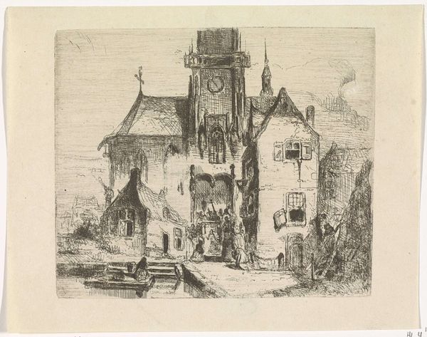 This graphite drawing by Adrianus Eversen presents a quiet view of buildings along a canal at the edge of town. The composition is predominantly tonal, with soft gradations of gray that create depth and a sense of atmospheric perspective. Eversen’s skillful use of line and shadow defines the architectural forms, but it’s the interplay between light and dark that truly shapes our perception. Notice how the diffuse light washes over the scene, yet certain structures catch highlights that sharply define their edges against the more muted background. This contrast isn't just descriptive; it’s expressive, lending a sense of stillness to the scene. The delicate rendering invites contemplation on the nature of representation itself, where the real is evoked through suggestion rather than precise replication. The drawing's appeal lies in its subtle balance between detail and ambiguity. It offers a meditation on how much can be conveyed with minimal means, challenging us to find beauty in simplicity.
