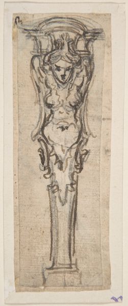 Editor: This is "Saint Sebastian," an engraving by Francesco Francia from around 1470 to 1480. It’s striking how the figure dominates the frame, almost pushing against the edges. What catches your eye when you look at this piece? Curator: Certainly, the composition displays an intriguing tension. The verticality is emphasized, trapping the figure, but it's the artist's deployment of line and the overall organization of form that captivates me. Consider how the etched lines build tone and volume, creating depth despite the relatively flat plane. Are you struck by anything in the rendering of the anatomical structure? Editor: Well, it seems somewhat idealized but also maybe a bit stiff? Is there something specific about the lines around his muscles and joints that you're noticing? Curator: Indeed. The musculature, while present, lacks the dynamic tension one might find in, say, a Pollaiuolo. Note the somewhat uniform application of hatching, creating a generalized sense of form rather than a meticulous rendering of anatomical detail. This imbues the work with a quality more akin to pattern than strict naturalism. Observe, too, how the positioning of the arms and legs contributes to an impression of restrained emotion. Does the stark, almost decorative, representation of the arrows behind the figure evoke a particular sensation in you? Editor: I hadn’t considered it like that, but yes, those stylized "arrows" now strike me as very deliberate choices about the formal qualities, even apart from their symbolic meaning. Curator: Precisely. While interpretations involving religious martyrdom may arise, let us not overlook Francia’s commitment to linear grace and compositional harmony. It is a testament to how a familiar subject could be reshaped by a focus on line and form. Editor: So, even without knowing the context, analyzing the art elements reveals so much. It reframes how I understood the work, making me appreciate Francia's control of line to portray a narrative.