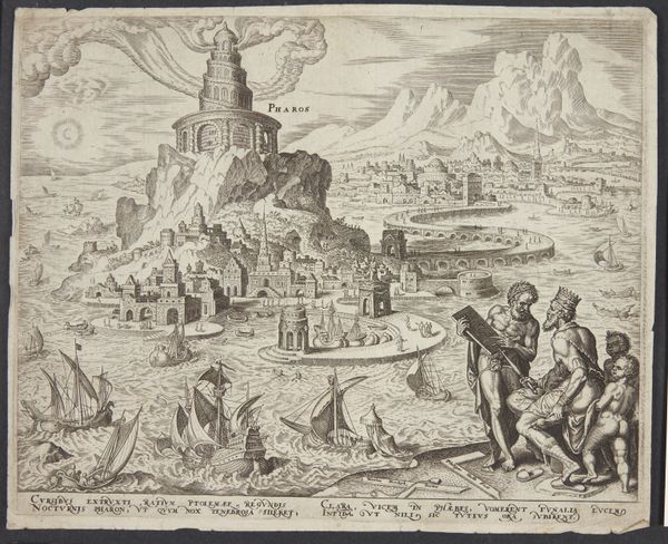 Curator: This etching, “The Fall of the Tower of Babel,” was created by Cornelis Anthonisz. in 1547, and we have it here at the Rijksmuseum. Editor: Wow, just looking at it, I feel a dizzying sense of ambition collapsing under its own weight. The sheer detail in the tower is impressive, but all I see is chaos and ruin! Curator: Absolutely, Anthonisz. uses this iconic biblical story to comment on the hubris of humankind, its insatiable appetite for progress and architectural achievement. Babel was more than a construction project; it was a challenge to divine authority. Editor: It's interesting, though. I see those tiny figures scrambling amidst the wreckage—there's still activity. Destruction is often fertile ground for rebuilding, physically and maybe even metaphorically, culturally? Curator: Precisely! Post-Reformation Netherlands was grappling with shifting power dynamics, religiously and politically. Anthonisz's print acts as a cautionary tale, reminding viewers of the potential consequences when ambition overshadows prudence and the common good. These historical anxieties mirror contemporary debates surrounding development and urbanization, offering a surprisingly relevant socio-political commentary. Editor: Well, speaking of urban planning, that original design… ambitious isn’t even the word for it. Look at those cascading tiers! What were they even going for with the top level? It makes me wonder what new impossible structures we might dare to build these days, and what price we may pay for their success. Curator: And what are our responsibilities in thinking about such ambitions? Yes, that’s really the heart of the matter here, the price and responsibility are very clearly articulated. Editor: Food for thought… or maybe just building blocks for the next generation. Thanks for helping me to consider what Cornelis Anthonisz. was attempting to illustrate in his etching. Curator: It's a potent reminder that progress, if untempered, can crumble into the very chaos it seeks to overcome. Thank you.
