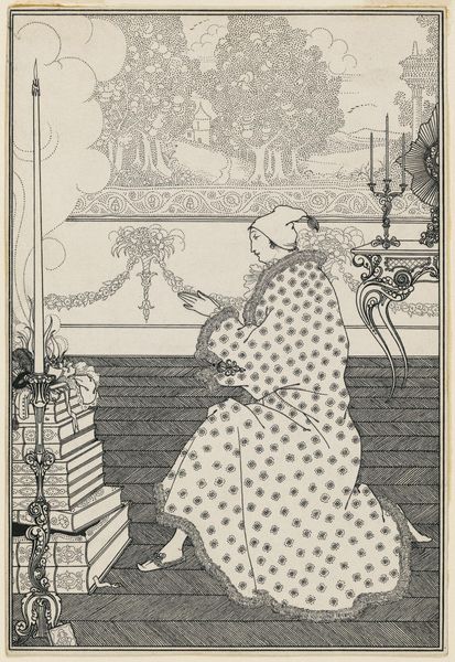 Aubrey Beardsley made this pen and ink drawing as an illustration for Alexander Pope’s mock-heroic poem, "The Rape of the Lock." Beardsley was a leading figure in the Aesthetic movement in England, which valued beauty and art for its own sake. This image depicts the elaborate preparations of a fashionable woman at her dressing table, reflecting the poem's satirical look at the vanities and trivialities of upper-class society in 18th-century England. Beardsley’s style, with its decadent, curvilinear forms, was influenced by Japanese prints. His work often explored themes of eroticism and artificiality, challenging Victorian moral standards. To fully understand Beardsley’s art, you must investigate the cultural history of the Aesthetic movement, as well as the institutions of art that either promoted or rejected his style. Research into the social history of the time helps us understand how Beardsley’s illustrations reflect and critique the values of his society.