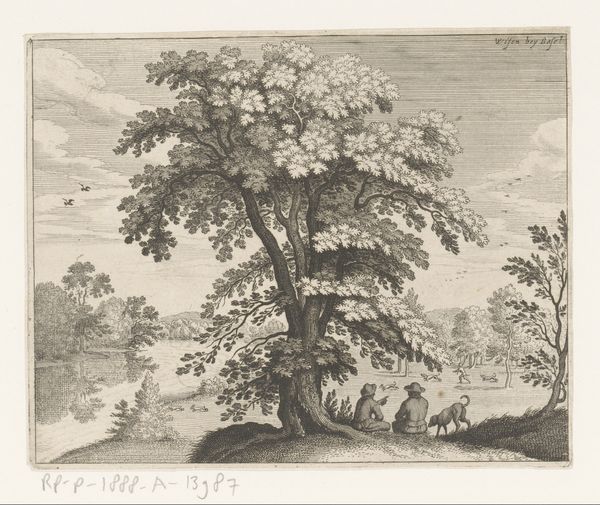 "Twee jachthonden met een haas bij een watermolen," or "Two Hunting Dogs with a Hare at a Watermill," was created by Quentin Pierre Chedel, an 18th-century French artist. This print presents a pastoral scene that's anything but peaceful. We see hunting dogs, symbols of aristocratic leisure, cornering a hare in a landscape marked by both nature and human industry. What does it mean to see this act of violence framed within a seemingly idyllic setting? Chedel was working during a time of rigid social hierarchies, and hunting was a privilege, reserved for the upper classes. Here, the wild hare, a symbol of vulnerability, falls prey to the instruments of power. The mill in the background is a reminder of labor and the economic structures that support this lifestyle of leisure. Consider the power dynamics at play here. The hunt embodies themes of dominance, class, and control over the natural world. What feelings does it evoke in you?
