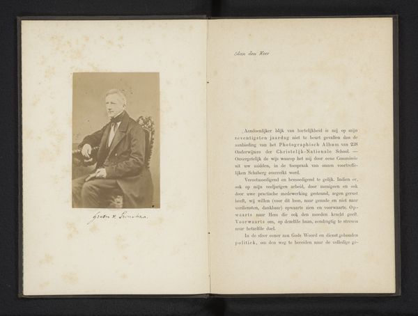 Curator: This gelatin-silver print, "Vier mannen rond een tafel met een emanatie zichtbaar", created before 1894, is attributed to Alexander Aksakov. The title translates to "Four men around a table with an emanation visible". Editor: Immediately striking, isn't it? The composition draws your eye directly to the central light. The severe tones amplify the sense of the unknown; its ethereal effect against the muted backdrop is incredibly thought-provoking. Curator: Precisely. The photograph speaks to the symbolism movement through its portrayal of a seance-like gathering, the 'emanation' becoming the focal point. Light is universally laden with religious and spiritual weight, further imbued with themes of illumination and transcendence. Editor: Agreed, but consider the tonal variations! Notice the subjects: the light itself practically pulsates, contrasting the still subjects below. Is it truly representational, or rather, meticulously staged to convey its message? I can see visual cues in their gaze, almost expectant, certainly attentive! Curator: Absolutely, the photograph offers cultural memory a certain framework by representing, perhaps legitimising, such occult interests. This may provide reassurance, and certainly, intrigue. The 'emanation' implies unseen realms, prompting profound contemplation beyond what's shown. Editor: But does its appeal hold if one recognizes this visual contrivance? Even staged, it holds merit as an exploration of the artifice present within images: this photograph challenges our own sense of visual perception as much as portraying faith or otherworldly experiences. Curator: Exactly, the interplay gives this photographic staging emotional impact by encouraging a belief in the existence of realms unseen, giving viewers the means to explore such concepts and realities with their own means. Editor: Indeed. The image compels us, beyond technique and belief, toward the intangible spaces found within its careful composition and what light means, what this gathering expects. Curator: The piece certainly offers ample insights on faith and visual perception. Editor: Ultimately the beauty exists in our engagement and, in many respects, our speculation.