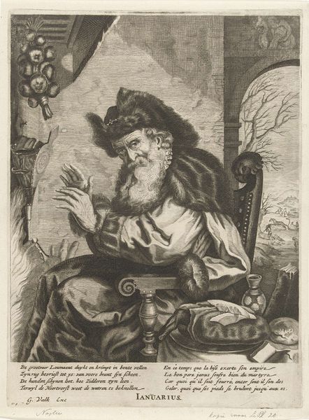 This is Judah, from The Twelve Sons of Jacob, made by Jacques de Gheyn II in the late 16th or early 17th century. It's an engraving, meaning the image was incised into a metal plate, then inked and printed. Notice how the network of lines creates shading and texture, giving the figure a sculptural quality. Look closely at the details: the fur trim on Judah’s robe, the lion’s mane, even the wrinkles on his face. Each one is rendered with incredible precision. Engraving was a laborious process, demanding immense skill and patience. De Gheyn would have used specialized tools to carve the image into the metal, working in reverse to achieve the desired result. The final print is a testament to his mastery of the medium, and to the rich possibilities of reproducible images in early modern Europe. It's a reminder that even seemingly simple prints could be the result of considerable labor and expertise.