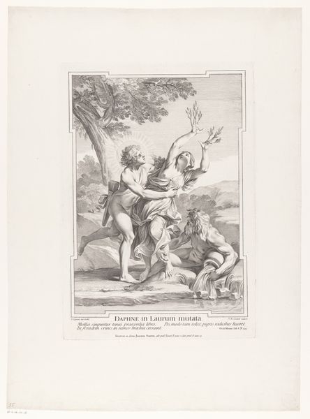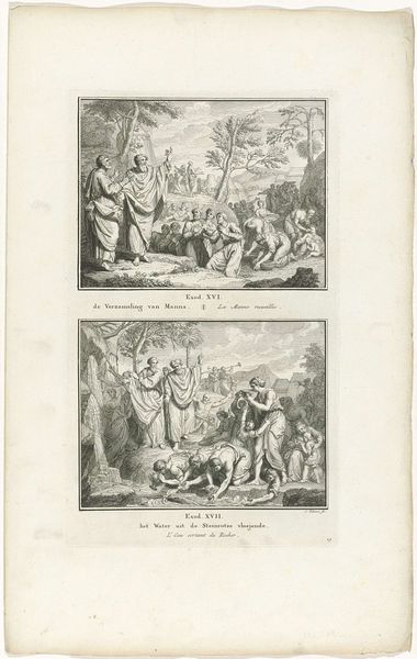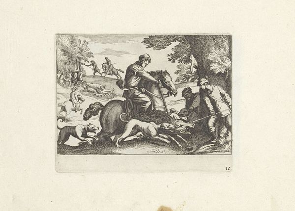 Curator: This is plate seven from Christian von Mechel's series, "Triumph of Death, Triumph of Divinity, Triumph of Poverty," housed here at the Harvard Art Museums. Editor: Well, right off the bat, I'm getting a very grim, yet darkly humorous vibe. It's like a macabre puppet show. Curator: Indeed. Von Mechel's work speaks volumes about power structures. Here we see death, personified, confronting various social classes. It reflects the anxieties of 18th-century Europe. Editor: I love how death is this skeletal figure, yet rendered with such delicate detail, as if he's a well-dressed gentleman making unwelcome calls. Curator: Exactly. The artist uses familiar imagery to explore the universal reach of mortality, commenting on social inequities and human folly. Editor: It makes you ponder, doesn't it? What battles are truly worth fighting when we all end up face-to-face with Mr. Bones? Curator: Precisely, these images are a stark reminder of the fleeting nature of earthly concerns. Editor: It is a potent reminder that despite our struggles, the great leveler awaits us all, and art like this helps us laugh, maybe a bit nervously, in the face of it.