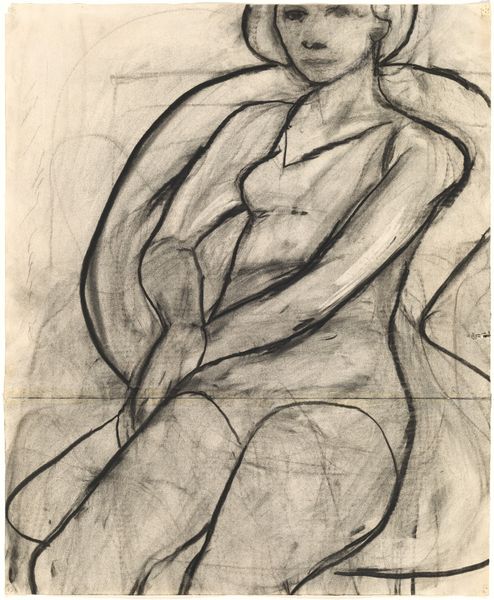 Here we see Georges Braque's 'Large Nude,' a drawing rendered in charcoal and chalk. Immediately striking is the interplay of light and shadow across the figure, creating a softened, almost dreamlike quality. The nude is not presented in sharp detail but rather as a study in form and volume. Braque masterfully uses line to suggest the contours of the body, focusing on the interplay of masses rather than precise anatomical correctness. There's a clear interest in the geometric simplification of form, anticipating Braque's later cubist explorations with Picasso. The shading, built up through layers of charcoal, lends a sense of depth and texture. This work challenges the traditional expectations of the nude, moving away from idealized beauty toward a more abstract consideration of shape and space. The muted tones contribute to the sense of timelessness, inviting us to contemplate the very structure of representation. It's a conversation about how we see, and what we choose to depict, in the act of looking.