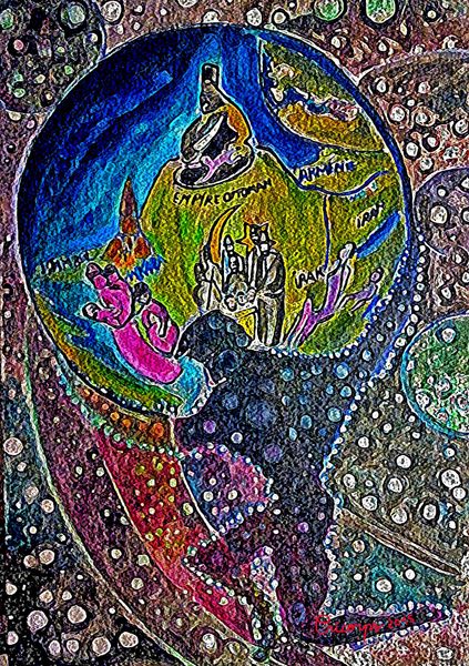 Esteban Frances created this chaotic landscape, swirling with symbols of creation and destruction. Dominating the canvas are the all-seeing eyes, reminiscent of ancient Egyptian art, which embody vigilance and knowledge. These eyes, which observe humanity, recur through epochs. They're found in the watchful gaze of Byzantine icons or even in the modern surveillance state. Frances uses these symbols to tap into primal fears and anxieties, connecting with our deepest, often subconscious, feelings about being observed. The turbulent imagery evokes states of metamorphosis, where forms shift and merge. This recurring theme in art represents the constant flux of life, the ever-changing dynamics of the human psyche. "Alborada. Paisaje Explosivo," compels us to confront our collective memories and the emotional echoes embedded within them.