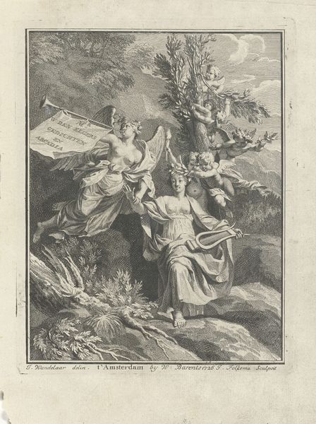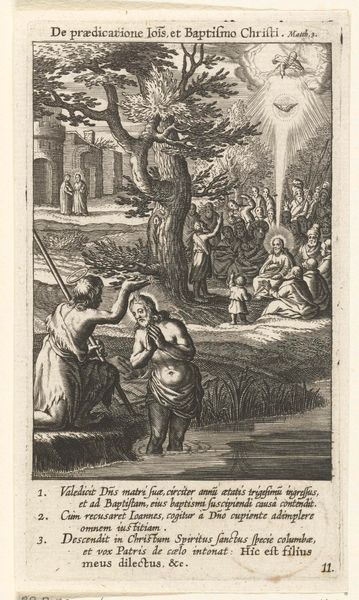 Editor: This engraving, titled "Embleem met man die overweegt welke weg hij in het leven gaat bewandelen," roughly translates to "Emblem of a man contemplating which path to take in life." It’s by an anonymous artist and dates back to the early 1620s. The composition is wild! What do you see in this piece? Curator: I see a fascinating example of early modern anxieties visualized through allegory. This image participates in a wider cultural debate about morality, choice, and the individual's relationship to salvation. Think about the rise of humanism and individual agency in the Renaissance; by the 17th century there was great uncertainty concerning human agency with profound anxieties about personal salvation and damnation. This print encapsulates that unease, offering a stark choice between earthly pleasures and divine reward. Notice how the figure's placement in the foreground isolates him, emphasizing the burden of this decision. Editor: It feels incredibly charged. Is that intentional or a product of its time? Curator: I’d argue it's both. The artist is clearly making choices to amplify the drama—the hellscape to the left, the heavenly vision above, the winding paths. However, this kind of visual language was very common during the Baroque period, reflecting the church’s role in public life as well as the development of printing presses used as powerful pedagogical and propaganda tools. The intent was didactic, intended to instruct the public and shape popular attitudes. Consider the sociopolitical conditions of the era. Editor: That makes so much sense! The political conditions helped amplify religious narratives that placed salvation front and centre. It's amazing how one image can unpack so many complex layers of history. Curator: Precisely! And analyzing its public role helps reveal these underlying narratives about institutional and public ethics. Hopefully you'll carry those questions forward!