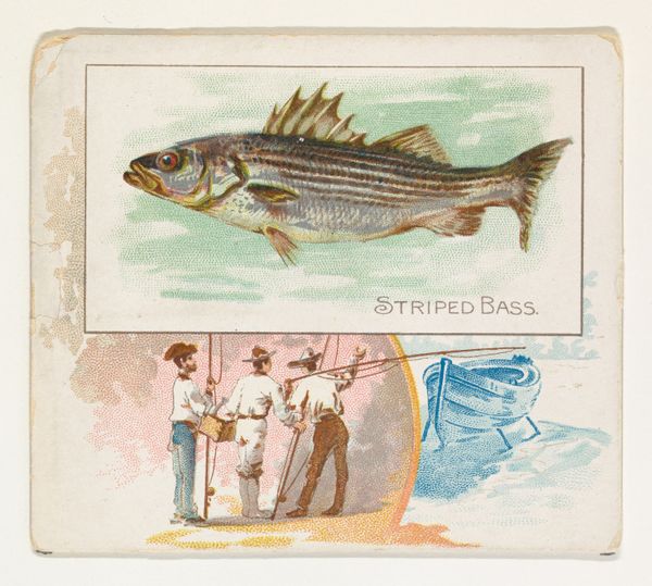 This is a lithograph of a salmon from the ‘Fish from American Waters’ series, created for Allen & Ginter Cigarettes. The central image is a salmon, a creature rich in symbolism across cultures. The act of fishing, depicted in the lower register, speaks to humanity's primal connection to the natural world. Consider the salmon’s journey upstream, a motif echoed in various mythologies as a quest or pilgrimage. Think of the ancient tales of heroes undertaking perilous journeys, or the cyclical nature of life and death found in many religious traditions. This image, seemingly simple, carries the weight of these collective memories. The depiction of fishermen calls to mind images of ancient seafarers or biblical scenes of disciples casting nets. Such images tap into our collective subconscious, evoking feelings of hope, struggle, and the eternal human quest for sustenance. It is a powerful image, engaging viewers on a deep, subconscious level. Thus, we observe in this cigarette card not just a salmon, but a symbol that has resurfaced, evolved, and taken on new meanings, a testament to the enduring power of images across time.