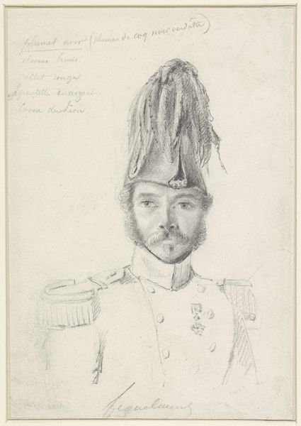 This is P.C. Skovgaard's drawing of J. Th. Lundbye, created with pen and ink, a portrait of a military man adorned with symbols of authority and order. The uniform, the cap, and the disciplined posture all speak to a martial ethos deeply ingrained in the cultural psyche. Notice the cap's emblem; it echoes heraldic devices meant to convey power and allegiance. Such symbols trigger collective memories of conflict, defense, and societal structure. Consider how such motifs have recurred through history. The Roman legionary's helmet, the medieval knight's crest, and now this cap—each signifies a will to power, adapted and transmuted across eras. This image resonates beyond its immediate context, tapping into primal fears and aspirations linked to protection and dominance. The stern gaze and rigid posture, while specific to this individual, also evoke the archetypal soldier, a figure laden with historical and psychological weight. The symbols are not static; they evolve, their meanings layered with each new interpretation, creating a rich, cyclical narrative of human experience, ever-present, ever-changing, and always engaging our deepest, often subconscious, emotions.