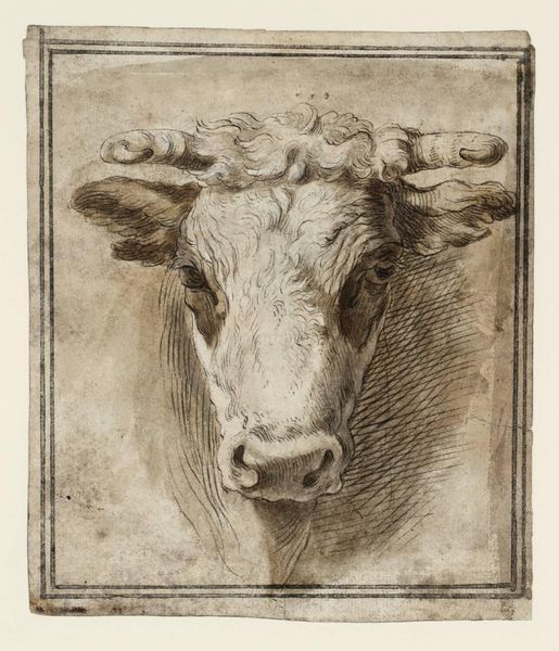 Curator: Here we have Joseph Highmore’s "Side View of a Bull’s Head," currently held in the Tate Collections. It's a striking study. Editor: Its moody chiaroscuro gives the bull an almost mournful presence, doesn't it? I immediately think of labor, agriculture, and exploitation. Curator: Note how Highmore uses delicate hatching to define the form, the subtle gradations creating volume on a relatively small support. Editor: But what does the bull signify in Highmore's era? Is it a symbol of virility, subjugation, or perhaps even colonial expansion? It is important to consider the ethics and the symbolic violence of animal depictions in art. Curator: While those readings may be valid, the technique itself is masterful. Editor: Indeed, it does offer a lot to consider regarding power dynamics and historical context. Curator: I appreciate the attention to detail and the animal’s form. Editor: I will definitely be thinking about the bull and its cultural associations.