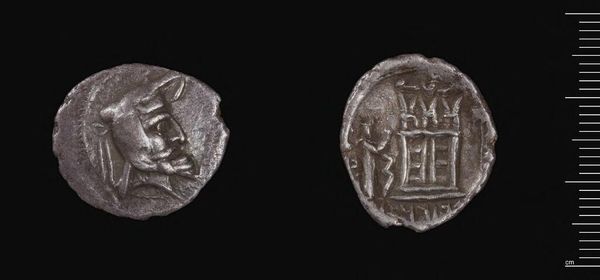 Editor: This is a Drachm of Ariarathes V. It's small, silver, and features a regal portrait. What do you think this coin tells us about power and image-making at the time? Curator: These coins are powerful tools. Ariarathes V uses his own image, linking it to the divine through depictions of gods. Coins like these circulated widely, shaping perceptions of his legitimacy and authority. They are mini billboards of power. Editor: So, it’s a form of propaganda? Curator: Precisely. It's a carefully constructed public image, distributed amongst the populace. It prompts us to consider how rulers manipulate imagery to secure their place in history. Editor: That’s really fascinating! I never thought about ancient coins in that way. Curator: The power of visual messaging transcends time. We can see how even small, everyday objects can play a role in the theater of politics.