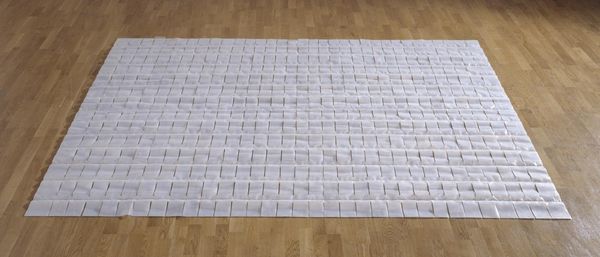 Editor: So, here we have Veronica Ryan's "Quoit Montserrat," part of the Tate Collection. It's quite striking—a large, white form topped with these dark, almost seed-like shapes. There's a stillness to it, but also a hint of something growing, maybe? What do you see in this piece? Curator: Ah, "Quoit Montserrat"... I'm immediately drawn to the contrast—the stark, geometric base versus the organic forms scattered on top. It’s like a memory garden, isn’t it? Those seed-like forms, for me, speak of potential, but also of loss. Montserrat is Ryan's birthplace, devastated by volcanic eruptions. It's as if she's asking, what can grow from devastation? Editor: That makes me see the piece in a new light, from stillness to resilience. Thanks! Curator: And thank you; I might have overlooked the stillness if you hadn't pointed it out!