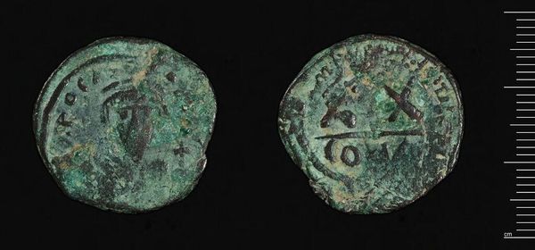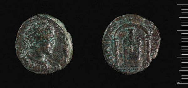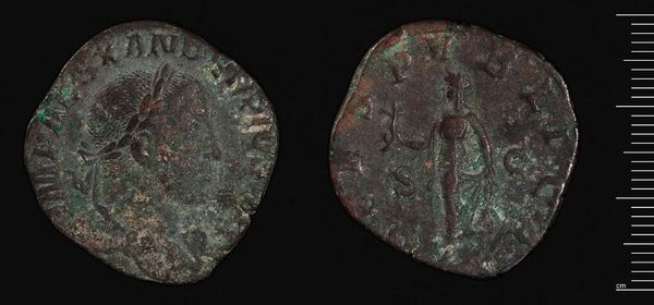 Curator: Here we have a Dupondius, a Roman coin weighing 9.56 grams, made under Emperor Commodus, now held at the Harvard Art Museums. It has a verdigris patina—quite lovely, really. Editor: It definitely shows its age. I'm immediately struck by the degradation—the wear tells a silent story of its journey through history. Curator: Indeed, the coin's material composition—likely bronze or orichalcum—speaks to Roman metallurgy and its role in economic systems. Its creation underscores the labor involved in minting currency. Editor: And the very existence of coinage represents state power. Commodus placing his image on currency served to solidify his public image, and to influence the flow of commerce during his reign. Curator: The process of crafting such coins en masse reflects a deep investment in stabilizing trade, enabling the exchange of goods and resources—which is a testimony to the period's societal needs. Editor: Looking at this now, I realize that something as mundane as money was also a powerful political tool. Curator: It’s remarkable how a small object can reveal the intersection of politics, economics, and daily life in ancient Rome. Editor: I agree. A fascinating piece, prompting us to think about the enduring power of imagery and materials across millennia.