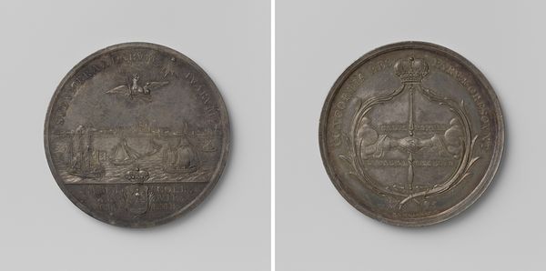 This silver medal commemorates the peace treaty of Regensburg, made between France, the Holy Roman Empire, Spain and the Netherlands. It was created by Jan Smeltzing. The process of minting, which involves the striking or stamping of metal, was not just a mechanical means of production. It was deeply interwoven with political messaging. The material itself, silver, was highly symbolic, associated with wealth and power. Its inherent qualities of luster and malleability made it an ideal medium for replicating intricate designs and text. This medal is a small object, but it speaks volumes about the labor, resources, and artistic skill required to produce such an artifact. The imagery depicted is related to the political context in which it was made. It shows that seemingly simple objects can carry profound cultural, social, and historical significance. Understanding the materials, processes, and context is essential to grasp the full meaning of this artwork.