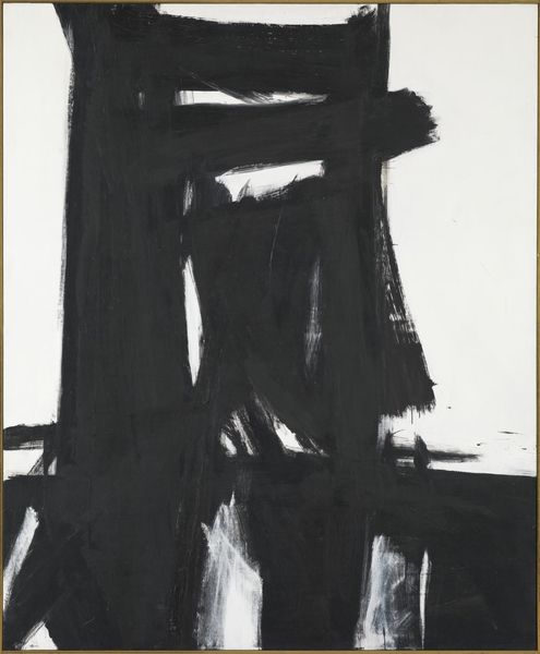 Here we see Eugene Brands's abstract work, "M: Mystery", which uses paint to explore form and emotion. At first glance, the painting presents a bold composition dominated by a stark white ‘M’ shape, flanked by areas of deep blacks and muted colors. The use of color, shape, and line is fundamental to its meaning. The white ‘M’ splits the canvas, creating a visual tension against the darker, heavier blocks of color. Brands plays with texture through visible brushstrokes and layered paint, adding a tactile quality. These elements create not only aesthetic beauty but also disrupt traditional modes of representation. Brands invites us to question fixed meanings and to engage with art as an evolving, dynamic construct. The rough edges and layered paints serve as a reminder that art's purpose is to continually challenge and expand our understanding of the world.
