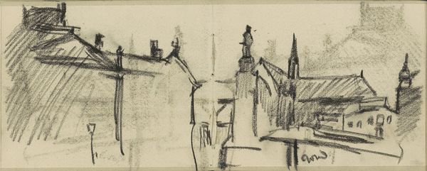 George Hendrik Breitner made this sketch of a courtyard in Brugge with graphite. It’s like two attempts to capture the same scene, side by side, where one is a ghostly echo of the other. The contrast makes me think about how we see, and how much our perception changes from one moment to the next. The graphite marks are so direct, so immediate. You can see the pressure of his hand, the speed of the line. On the right, the tower of the church is rendered with confident strokes, while on the left, it’s like a memory fading away. Look at how the lines create depth, leading your eye down the street, toward the church. It's like a stage set, or a dreamscape. This reminds me of Whistler, another artist who was interested in capturing fleeting moments and atmospheric effects. Ultimately, both artists remind us that art is not about perfect representation, but about feeling and experience.