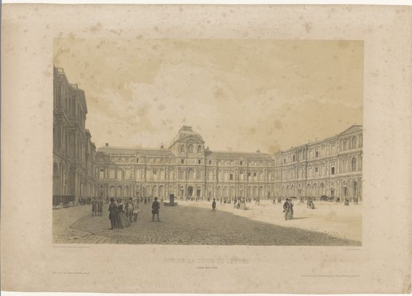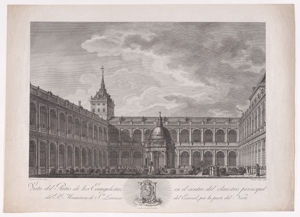 Editor: Here we have Antonio Sandi’s "View of the courtyard of the Doge's Palace in Venice," an engraving from sometime between 1743 and 1817. The architectural detail is astounding. What strikes me most is the sheer volume of people depicted. What do you see in this piece? Curator: I see a carefully constructed depiction of Venetian power and social order, deeply implicated in the political narratives of its time. Look at how Sandi frames the Doge's Palace, emphasizing its grandeur and seeming immutability. Who has access to this courtyard, and who is being kept out? Editor: That's a great point. The people seem almost like extras on a stage, their roles predefined. It also feels like they are all wealthy… Curator: Exactly! The clothing, the leisurely activities, the very air of the place reeks of privilege. How might this image function as propaganda, solidifying the power of the Venetian elite in the eyes of both locals and outsiders? Consider, too, Venice's decline during this period; could this image be romanticizing an idealized past to compensate for a changing reality? Editor: So, it's not just a pretty cityscape, but also a statement about class and power structures? The precision almost hides a deeper, more critical narrative. It makes you wonder who is missing from this picture and what their experience of Venice was. Curator: Precisely. And think about the choice of engraving, a medium accessible to a broader audience than, say, a private oil painting. This image was meant to circulate, shaping public perception of Venice as a powerful, ordered, and undeniably beautiful city-state. The power of images is undeniable. Editor: It's fascinating how one image can be a window into so many social and political issues. It definitely gives me a new perspective on viewing cityscapes. Thanks for showing that. Curator: Absolutely! Questioning the stories that art tells, and those it chooses to omit, is always time well spent.