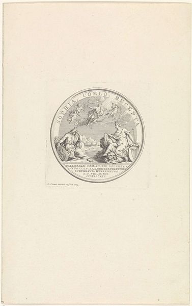 Editor: This engraving, "Penning met Apollo en de drie gratiën" by Bernard Picart, created in 1717, feels like a window into a different era. The figures are so idealized and... frankly, white. How do we even begin to interpret its symbolism today? Curator: It's a fantastic question. This piece, typical of the Baroque period, is steeped in allegory. We must address the representation of bodies within historical, power dynamics, specifically the relationship between classical ideals and race. Consider how the "whiteness" of the figures, though seemingly neutral, reflects a period where European aesthetics were privileged. Editor: So, the nudity isn't just about artistic expression; it's also a statement? Curator: Exactly. Nudity, in this context, is less about pure aesthetics and more about reinforcing ideas of beauty aligned with specific power structures. Apollo, the Graces - they all represent Enlightenment ideals, but those ideals were interwoven with colonialism and the subjugation of non-European bodies. Does seeing the work this way change your initial impression? Editor: It does. It’s uncomfortable realizing these ideals were exclusive. Is the very celebration of "beauty" then, inherently political? Curator: Precisely. It challenges us to examine whose beauty is being celebrated and at whose expense. We need to acknowledge the social and political frameworks that shaped these representations. Editor: This makes me want to rethink how I look at historical artworks, acknowledging these historical contexts rather than glossing over them. Curator: And by interrogating these images critically, we can build a more inclusive understanding of art history and its impact on our contemporary world.