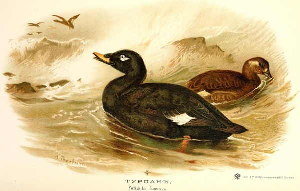 Archibald Thorburn, a British artist, painted this watercolor of Surf Scoters. During the late 19th and early 20th centuries, when Thorburn was active, there was a growing interest in natural history and wildlife conservation in Britain. This image of the Surf Scoters reflects these rising concerns. Thorburn made a career from meticulously depicting birds and other animals. The composition and detail here are important to consider. Thorburn presents the birds as specimens for observation, rather than simply decorative elements. The artist used his works to illustrate books. His detailed illustrations contributed to scientific understanding and appreciation of avian species and their habitats. His art supported new approaches to scientific observation. To fully understand the artwork, it is crucial to examine the socio-political context in which the art was made. Resources such as historical documents, scientific publications, and cultural studies, can illuminate the artwork's meaning.