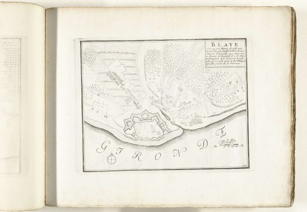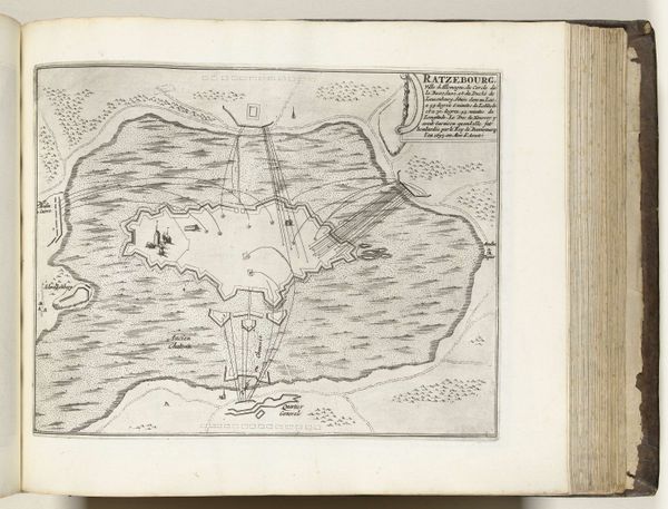 Curator: Looking at this "Plattegrond van Bellegarde," a plan of Bellegarde created around 1693-1696, the first thing I notice is this impressive, almost theatrical rendering of a fortified cityscape. The detailed lines give it a palpable sense of calculated precision and imposed authority. Editor: Imposed is the word. It gives the immediate impression of strategic planning—an architectural diagram born from both artistic skill and a desire for domination. What is most visually arresting to me is how geometric the shapes are. I wonder if this obsession with form carries meaning beyond military practicality? Curator: Certainly. In its time, these types of fortifications, particularly in the Baroque era, were signs of power. The city as a geometric symbol showed how a ruler controls the world through design and order, even conquest. Its rigid aesthetic embodies not just the functionality of defense, but its impact on shaping societies through spatial control. The anonymous maker may have simply aimed to inform but likely internalized societal hierarchies through representation. Editor: That's what I'm wondering—if the symbolism isn't unintentional. Geometric designs, particularly circles, pentagons, stars within stars… they are potent alchemical, astrological and esoteric emblems often tied to power, protection, even the divine. Perhaps that aesthetic choice elevated Bellegarde symbolically, suggesting invulnerability or a sense of providence over this urban space? Curator: Perhaps. This city portrait utilizes ink in an engraving and drawing medium, thus suggesting accessibility for distribution and use in governance and city planning, in that period's Netherlands—yet the Baroque details might signify not only accessibility but ambition and political intent. Who consumes the image matters profoundly. Editor: Absolutely. And tracing these influences reminds us that even technical drawings function within wider cultural conversations, layered with conscious or unconscious beliefs, which imbue physical structures with greater symbolic importance over time. Curator: Indeed. This journey from seeing this merely as a map to considering its broader societal significance highlights art's role not only reflecting history but enacting and affecting its flow. Editor: And realizing that images are not only beautiful but potent can reshape our interpretation of both our past and our present.
