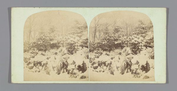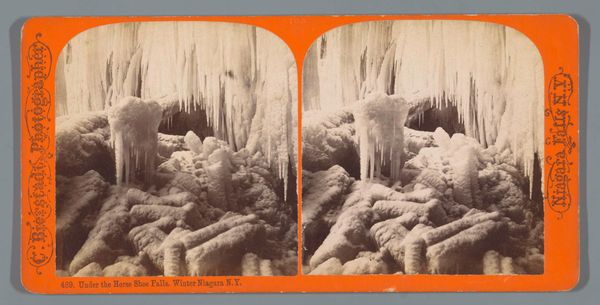 This stereoscopic image, "Frozen Plants on Luna Island near Niagara Falls," was captured by George Barker. Notice how the composition, through the stereoscopic effect, creates a distinct sense of depth, pulling the viewer into the icy scene. Barker masterfully uses light and shadow to define the textures of the frozen vegetation. The monochromatic palette emphasizes the starkness and coldness of the winter landscape. The seemingly random arrangement of ice-covered plants belies a careful orchestration of visual elements. Consider how the dual images play with our perception, simulating three-dimensionality and inviting a more immersive experience. This photograph is not just a representation of a natural scene; it is an exploration of how photography can shape our understanding and perception of space, challenging our notions of reality. The formal qualities of the image thus become a crucial aspect of its meaning.