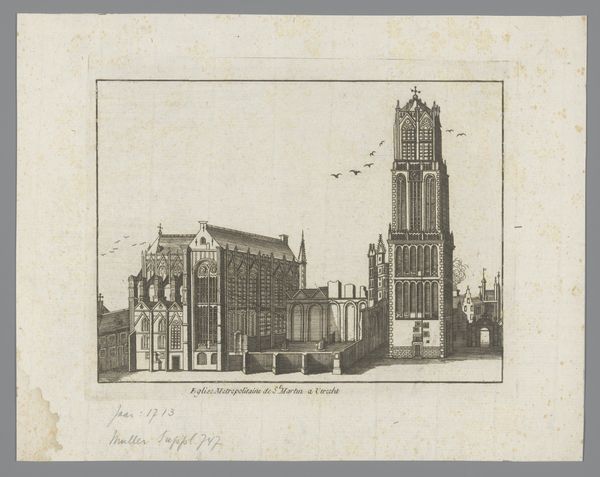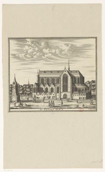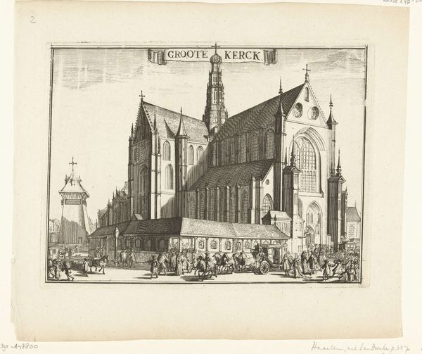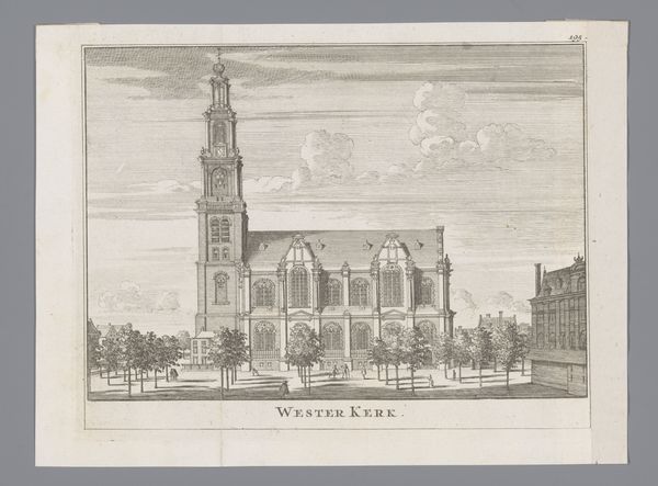 Curator: This drawing from 1666, titled "Ontwerp voor de toren van de Nieuwe Kerk te Amsterdam," offers us a glimpse into a proposed, though ultimately unrealized, addition to Amsterdam’s cityscape. Rendered in ink, print, and engraving on paper, the design is credited to an anonymous artist. Editor: It has such an elegant, yet oddly unfinished feel. The meticulous detail in the church and its surroundings contrasts with the ethereal, almost detached quality of the tower design floating above. Curator: Indeed. This piece reflects the architectural ambitions of the time. Amsterdam was booming in the 17th century, a hub of commerce and culture, and grand structures like this new church tower were envisioned to represent that power. Its visual presence was designed to impress, speaking directly to Amsterdam’s cultural influence. Editor: So, was it a matter of money? Shifting political winds? Or perhaps simply a lack of public will? What halted this proposed expression of Baroque power? Curator: All plausible factors, no doubt, but perhaps also evolving tastes. While the Nieuwe Kerk exists, as you can see, the depicted bell tower design didn’t quite mesh with the evolving social and political values of the time, especially in its proximity to the royal palace, where the elite consolidated political power. Consider how art institutions shape taste, as they too express political intentions. Editor: I find that idea so provocative, how public spaces, architecture, and art mirror power dynamics, the dialogue between the imagined tower and its surroundings – a statement, rather than just brick and mortar. Curator: Precisely. It's a fascinating "what if," inviting us to consider how urban spaces reflect cultural values and political statements. The piece captures a specific moment in time, revealing both ambition and restraint. Editor: I'm left pondering the significance of unrealized visions—how they continue to shape our understanding of history, perhaps even more so than completed projects. Curator: And ultimately, a visual testament to a city's continuous transformation and complex dialogues.