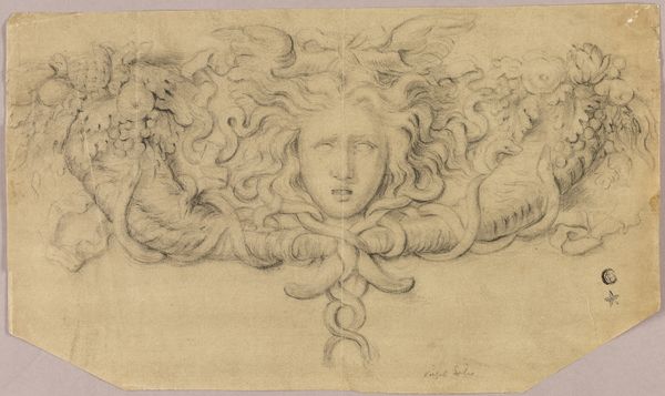 Curator: Before us, we have "Design for a Helmet with a Sphinx presented in 3/4 View," a drawing by Giovanni Battista Foggini, likely created between 1652 and 1725. Editor: It's a striking image, instantly evoking a sense of Baroque theatricality. There's a delicate, almost dreamlike quality to the rendering. Curator: The medium is primarily pencil and ink on paper, rendered with fine lines. We see a figure wearing an ornate helmet, adorned with what appears to be a sphinx and elaborate plumes. The composition is tightly focused, with much of the visual interest directed at the face. Editor: The prominent sphinx strikes me. Given the era and Foggini's context, does this reference classical power structures, the historical appropriation of mythology to bolster European narratives of dominance? And I find the partially nude form on top of the helmet rather bold, I wonder how such details might have been read. Curator: Precisely. The work employs the symbolism prevalent during that time. Think of royal portraiture of that period: helmets functioned to signify martial strength and leadership, though often referencing ancient Roman and Greek precedents in order to legitimize a lineage and create authority. Editor: Yes, but one wonders who exactly could have been expected to wear it! What kind of presence does that sort of armor seek to impose on society? Is it a matter of control of the masculine image or a feminine defiance of war culture norms? Curator: That's an intriguing angle to it. But focusing on the lines, notice how Foggini has managed to suggest weight and texture with such economy of means. Editor: Still, it also carries this undeniable sense of privilege, given how war affected diverse populations during those centuries. Curator: Yes, there are tensions present when viewing a work across centuries that once presented a unified political front. Editor: Indeed. This drawing leaves me with many things to ponder. Curator: For me, I will have to examine other Foggini drawings to get a better sense of the use of shading in order to truly place this artwork.