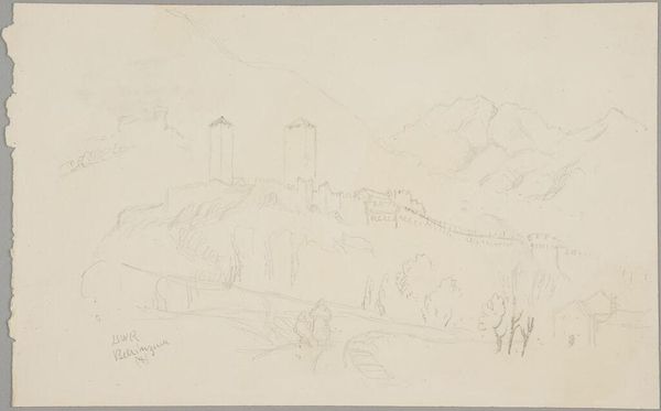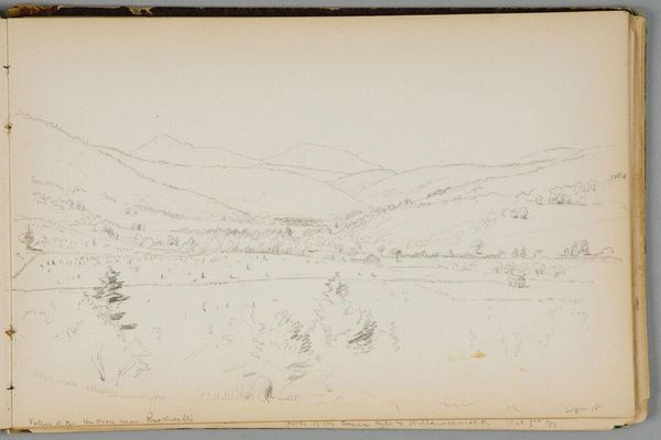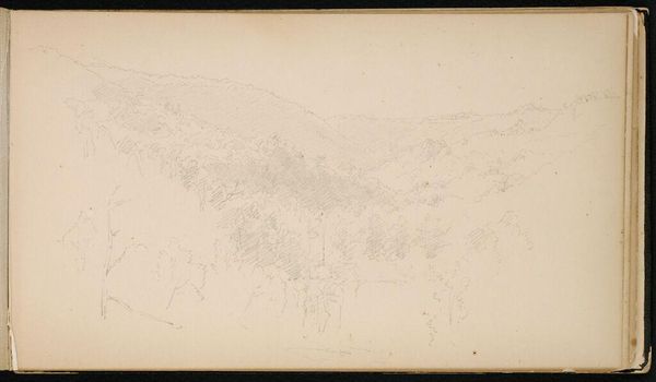 Editor: This is Sanford Robinson Gifford's sketch, "Cheat River Valley." It's a simple pencil drawing, and I’m struck by the handmade quality – you can really see the artist’s hand in the marks. What do you see in this piece, thinking about its production? Curator: The rapid strokes speak to a moment of plein air observation. I wonder what kind of pencil Gifford was using, and how the available paper affected his mark-making? The relative ease of obtaining these materials also speaks to Gifford's class and access. Editor: That’s a really interesting point. I hadn’t thought about the social implications of access to materials. Curator: The presumed disposability of a sketch like this, compared to a finished painting, is something to consider, too. The materials themselves dictate the value we ascribe. Editor: I've never considered the class implications of a pencil! Thank you for illuminating that.