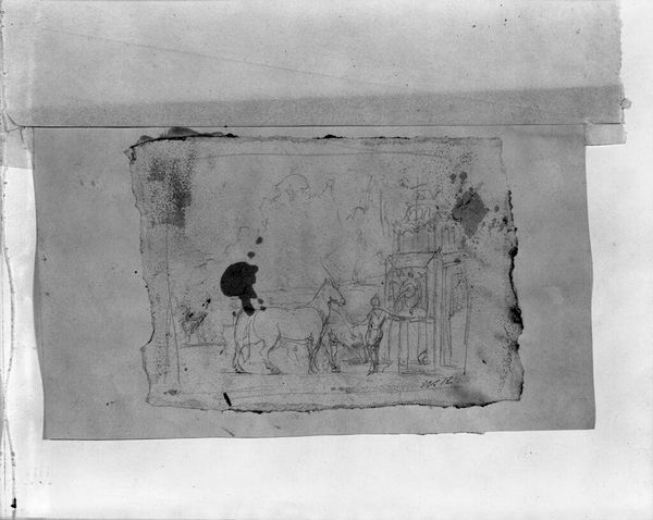 Editor: Here we have Lovis Corinth’s “Cain and Abel,” a drawing where the figures seem to burst with raw emotion. The loose sketch style is incredibly striking. What can you tell me about its historical context? Curator: This drawing, depicting such a foundational story of violence, reflects Corinth’s broader engagement with themes of human struggle and morality. Consider the time in which he was working, rife with societal upheaval and questioning of traditional values. How might that have shaped his interpretation? Editor: So, the social climate possibly influenced his focus on the darker aspects of the narrative? Curator: Precisely. Corinth, working within a rapidly changing art world, used biblical narratives to reflect contemporary anxieties and comment on the human condition, inviting viewers to confront uncomfortable truths. It’s less about the literal depiction, and more about the emotional and psychological impact. Editor: That’s a powerful way to look at it. I’m seeing the piece in a new light. Curator: It's about questioning how such narratives are reinterpreted and used to reflect on the viewer’s society.