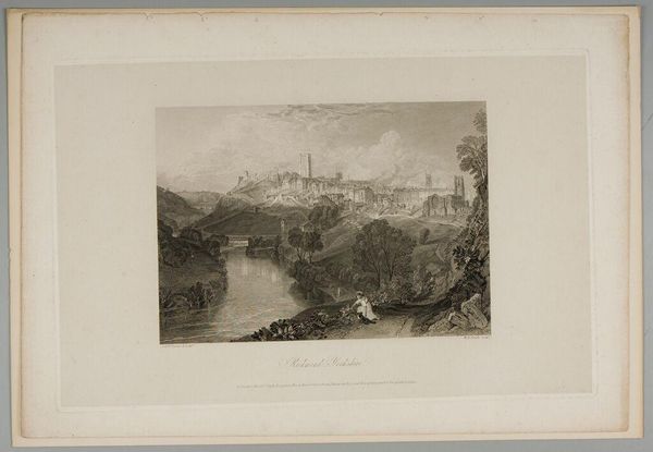 Curator: This is James C. Allen's "Cannes", a landscape offering a serene view of the coastal town. Editor: There's such a somber yet comforting tone to this image. What symbols can we find in this scene? Curator: Well, the distant castle evokes power structures and histories of conquest, while the family on the shore speaks to everyday life. Editor: The juxtaposition of the castle with the ordinary hints at the power dynamics at play in society. Who has access to that power? Curator: And how does its presence shape the lives of those below? It's a fascinating interplay of symbols and social commentary, a dialogue between past and present. Editor: The way the light plays across the water suggests a sense of possibility, a path forward. I think the artist offers a chance for us to consider the enduring legacy of power.