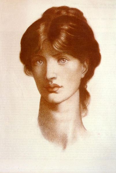 Editor: So, this is "The Lady of Pity," painted by Dante Gabriel Rossetti in 1879, using oil on canvas. The figure looks directly out at us with a kind of somber, contemplative expression. What do you see in this piece, beyond the beautiful details? Curator: The symbols here are what intrigue me most. Notice her downcast gaze, the clasped hands - they speak of both grief and acceptance, universal human experiences. But what specific cultural memory might Rossetti be drawing on, do you think? Editor: Maybe the Madonna figure, a symbol of suffering and compassion? Curator: Precisely. And consider the title itself, "The Lady of Pity." It evokes not just sympathy, but perhaps a shared understanding of sorrow. Rossetti frequently uses women to communicate psychological and emotional states – and often in connection with romantic or literary themes. How does that interplay with the style, do you think? Editor: The Pre-Raphaelite style gives her an almost otherworldly beauty, doesn't it? Like a figure from a medieval romance, yet presented with realist precision. Curator: That’s the core of it. The symbolic weight is grounded in a recognizable human form. Rossetti makes accessible these deep wells of shared human experience through imagery. This blending is where much of the painting’s enduring power resides. What stays with you? Editor: I find myself thinking about how Rossetti combines beauty with sorrow to make a lasting statement on the shared human experience. Curator: Yes, it is the dialogue between the beauty of form and the universality of sorrow that I also appreciate most.