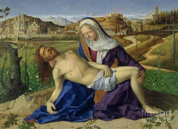 Dirk Bouts painted "The Lamentation of Christ" on a wood panel sometime in the mid-15th century, and it now hangs here in the Louvre. The work depicts the Virgin Mary and other figures mourning over the dead body of Jesus Christ. Bouts was a Dutch painter active in Leuven, and this work reflects the religious culture of the time. The composition is carefully arranged to focus on the emotional impact of Christ's death. Interestingly, this panel likely formed one part of a larger altarpiece, demonstrating the institutional context of religious art at the time. We might ask, who commissioned it and for what purpose? Was it designed for a church or a private chapel? The answers to these questions lie in archival research, allowing us to understand the painting as more than just an aesthetic object but as a product of a particular social moment.