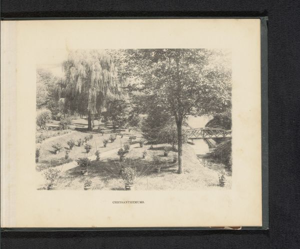 Curator: This gelatin-silver print, taken by Fréderic Boissonnas sometime before 1896, is titled "Balcony of a House and Meadow with Cattle". It offers a serene rural scene. Editor: The mood is pastoral and idyllic, almost staged. The high contrast lends it a dramatic yet dreamlike quality, wouldn't you say? The tonal range pulls you in. Curator: I would concur. The sharp contrast does provide clarity. We see that Boissonnas often focused on landscapes that celebrated the rural life. The turn of the century experienced urbanization and industrialization, so works such as these evoke the simplicity and tranquility of country existence. Editor: Right. Observe how Boissonnas masterfully divides the composition. The left side is anchored by the detailed balcony structure, offering complexity, in contrast to the openness and softness on the right dominated by the animals. There's almost a textural dialogue between architecture and nature. Curator: Yes, the inclusion of the architectural structure is in dialog with nature but also a lens for it. You can feel an intersection of private versus communal as well, as the figures sit secluded, elevated, watching those laboring outside in view. How might this composition reflect social dynamics or perspectives of the era? Editor: Hmm, fascinating. Considering Boissonnas positioned the balcony to face the landscape, it becomes an observation deck. Were those people, or others like them, perhaps removed from working to instead passively own the land's output? It begs one to think about leisure and land use. Curator: Indeed. "Balcony of a House and Meadow with Cattle" is both aesthetically pleasing and thought-provoking. Editor: Exactly. The contrast between the detailed architecture and expansive landscape invites viewers to think about labor, society, and environment back then and the effect of our choices today.