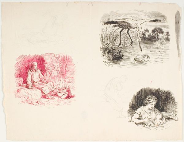 Editor: Here we have "Liggende halfnaakte vrouw met op de achtergrond een schip," or "Reclining Semi-Nude Woman with a Ship in the Background" by Isaac Weissenbruch, made sometime between 1836 and 1912 using pen and ink. I’m struck by the contrast between the delicately rendered figure and the sketchiness of the background. What's your take on it? Curator: Well, this piece operates within a complex web of artistic and social dialogues. Consider the period in which it was created – the late 19th, early 20th century. How did the increasing accessibility of art education, the rise of museums, and the growing fascination with ‘exotic’ cultures impact the representation of the female nude? What narratives do these images reinforce or challenge? Editor: That's fascinating. I hadn't thought about how the growth of museums could affect the subject matter. So, is this artwork a reflection of societal views, a commentary on them, or something else entirely? Curator: It’s likely both, wouldn’t you agree? Weissenbruch, though working within established artistic traditions, seems to be toying with the gaze, placing the woman in a liminal space between idealized beauty and naturalism. Does this piece perpetuate certain power dynamics inherent in the act of looking, or is it attempting to subvert them? Think about the role of the male artist depicting a female nude for public consumption. Editor: That's a good point. It’s forcing me to see beyond the initial impression of a simple sketch and think about the broader social implications of its creation and exhibition. Curator: Precisely! And thinking about those power dynamics changes the way we approach this piece. I am grateful for the chance to rethink what I bring to this image. Editor: I will definitely never look at a nude sketch the same way again. Thanks for sharing your perspective!