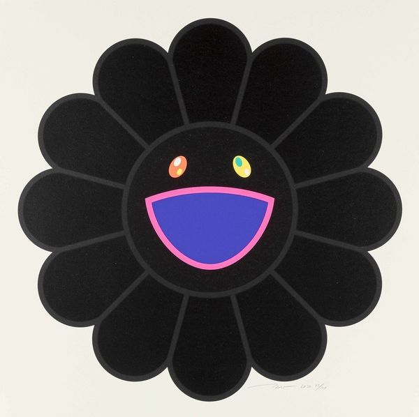 Takashi Murakami created this print, School Entrance Ceremony, using screenprint and lithograph techniques. Murakami emerged as an artist in Japan during a period of economic stagnation following the collapse of the bubble economy in the 1990s. Murakami's work often explores themes of trauma and fantasy through colorful, cartoon-like imagery. His signature "Superflat" aesthetic blends traditional Japanese art with contemporary pop culture. The smiling flowers, a recurring motif in his work, can be seen as both joyful and unsettling. "I want to see what I'm seeing. I'm trying to see the world through my own eyes" - this quote from Murakami encapsulates his desire to create a unique visual language rooted in his own experiences and observations. The work reflects the complex interplay between tradition and modernity, happiness and anxiety, and the individual and society. It offers a powerful reflection on contemporary culture and the human condition.
