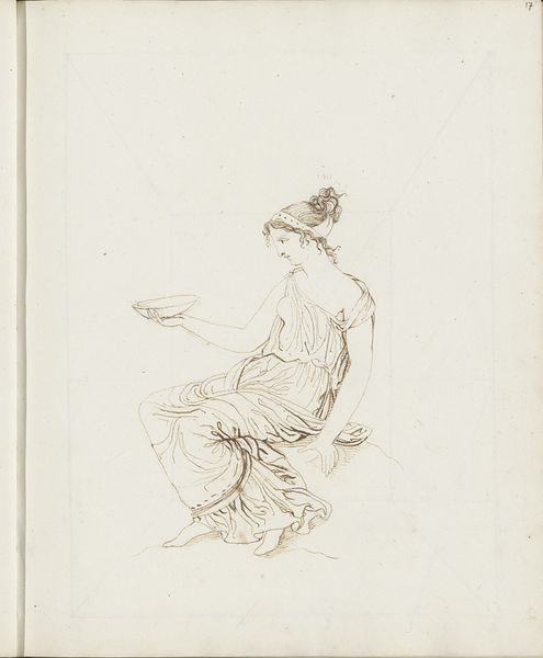Editor: This delicate pencil sketch by Hendrik Pothoven, titled "Standing Child Holding onto a Chair," dates back to the late 18th century. There’s something very sweet and intimate about it. The child's gesture, holding on for support, speaks of fragility and innocence. What cultural echoes do you hear when you see this piece? Curator: This drawing resonates deeply with the symbolic weight of childhood in the Rococo period. Children were often depicted as miniature adults, echoing societal values and aspirations. The ornate clothing, including the feathered hat, isn't just charming; it’s a signal of social standing. The child holding the chair signifies their dependence, but it also symbolizes potential, and perhaps even the future legacy of their family. Doesn’t the chair almost feel like a throne in waiting? Editor: That's a striking image, a throne in waiting! So, even in something as seemingly simple as a child holding a chair, there’s a coded message about social structure? Curator: Precisely! And look closer—notice how the soft lines create a sense of transience. The child is caught in a fleeting moment, echoing the Rococo fascination with the ephemeral nature of beauty and life. Think about the weight carried by depictions of children. It represents inherited societal memory, as well as familial pride and expectations. Editor: I hadn’t considered that the lightness of the drawing actually underscores the symbolic weight of the subject. I’ll never look at a portrait of a child the same way again! Curator: Indeed! These images served as potent symbols within a specific cultural landscape. Seeing the past through symbols can be like finding lost heirlooms, now, can't it?