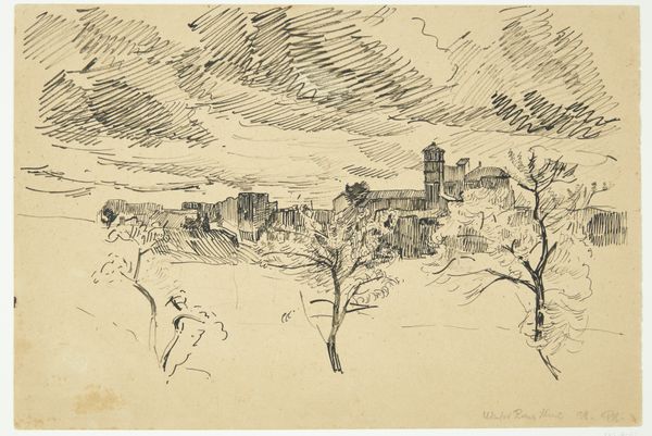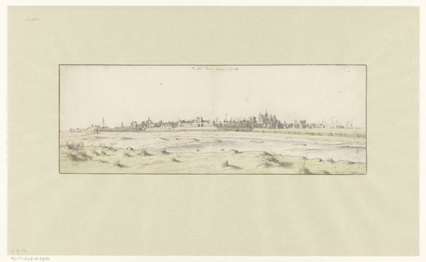 Curator: This is Thomas Hartley Cromek's "The Acropolis from the Areopagus, Athens," created around 1846. It’s a captivating work combining watercolor and ink, offering a perspective of the Acropolis from the Areopagus. Editor: It’s ethereal. The muted blues and greens give it an almost dreamlike quality. I am particularly struck by the emptiness in the foreground of the image, the mass of rocks seems devoid of people even though the hill it stands on is not. What was Cromek trying to tell us about this historic meeting place? Curator: Cromek, a Romantic artist, would have been deeply influenced by the "plein-air" approach—capturing the immediate, sensory experience of being on location. Think about how this method aligns with Romanticism’s emphasis on feeling, experience and an engagement with an authentic form of nature as a cultural marker of social class. Editor: Exactly! It’s that "on-the-ground" feel that makes me want to push back on its Romantic associations, as its loose ink style coupled with pale watercolours almost make this seem documentary, especially given that it’s located at what was traditionally seen as the place to hold court in the city. What kind of cultural forces influenced Cromek when he chose this viewpoint? Curator: Absolutely. During this period, viewing ancient sites such as Athens was part of a European cultural elite’s understanding of a political continuity between their society and ancient society. Travel and art from that travel was part of affirming your belonging in this political context. Athens held symbolic weight, evoking notions of democracy, philosophy, and Western civilization's origins and England specifically was still keen on solidifying its imperial claim. The British Museum certainly helped popularize this point of view. Editor: A loaded gaze indeed, even in such a seemingly simple rendering of place! When viewed from our contemporary political lens, the drawing and its almost transparent image of a long lost civic location invites complex conversations around ownership and colonial entitlement with real repercussions in contemporary geopolitics. Curator: Precisely. Its historical significance offers us space to reflect on these dynamics. Editor: Definitely something to keep in mind as we continue to navigate this historical perspective, thank you for contextualizing that.