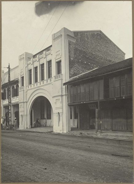 Editor: This photograph, entitled "Gebouw van de Gebroeders Kerkhof," was taken sometime between 1914 and 1919. The starkness of the building and the lone horse and carriage really strike me. What details stand out to you, considering the materiality of the photographic process itself? Curator: It's compelling how this seemingly simple image encapsulates so much about production and labor at the time. Notice the building's architecture, clearly indicating access to specific materials like stone and timber. Now think about the labor needed, from the quarrying of stone, the work of carpenters and other laborers and the building's construction, alongside the economics surrounding horse-drawn transport. The photograph then, far from being a ‘realistic’ view, is an index of economic and labor activities. Editor: That’s fascinating! It also looks like the photographer aimed for realism as a style. Does the photograph’s surface – the paper, the chemical emulsion – tell us more about the photographer's material constraints and potential class associations at the time? Curator: Absolutely. The choice of photographic paper, the chemicals used in development – these weren't neutral choices. They speak volumes about accessibility, both in terms of financial resources and technical expertise. Realism in photography is, therefore, as much about material accessibility and available resources as it is about artistic intent. Who gets to represent "reality," and with what means? That is always a critical question. Editor: So it’s not just the scene depicted, but the photographic process itself that reveals the socioeconomic conditions of the time? Curator: Precisely. This photograph serves as an archive, but not just of the cityscape; also as a historical record of economic production, from buildings and transportation. We can analyze the materiality of both subjects and means of the art production. Editor: This definitely gives me a whole new way to see not only this photograph, but really all artworks.