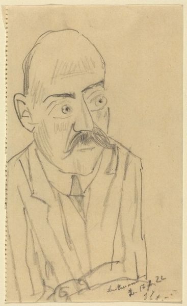 Editor: This is "Geografen, Professor G. Hatt. Brystbillede en face." a pencil drawing by John Christensen from 1935, currently held at the SMK. The lines are delicate, almost hesitant, giving it a rather introspective mood. How do you interpret this work? Curator: This drawing, to me, speaks volumes about the intellectual climate of the 1930s. Christensen's choice to depict a geographer using such a raw medium - simple pencil - invites us to consider the relationship between scientific observation and artistic expression. Given that this was during a period marked by growing political instability and social change, what do you think the choice of such an intimate, almost vulnerable, depiction of a professor might signify? Editor: Perhaps a commentary on the individual amidst larger societal shifts? A focusing on the human element in a time of turmoil? Curator: Precisely. Think about the role of intellectuals like Professor Hatt during this time. Geography, then as now, involved navigating complex geopolitical landscapes. By presenting him in such a personal light, Christensen might be subtly questioning the authority, or perhaps even the limitations, of academic knowledge in the face of real-world events. Editor: That's a fascinating perspective. I initially saw it as just a simple portrait, but framing it within its historical context adds layers of meaning. It becomes less about the individual and more about the social and political environment they inhabited. Curator: Absolutely. And by engaging with these layers, we can start to unpack the complex dialogues between art, identity, and power that were shaping the world then – and continue to shape it today. Editor: I’ll definitely look at portraiture differently now! Thanks for sharing your insight.