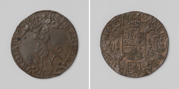 This small bronze medal commemorates the voyage of Marie Louise d'Orléans to Spain in 1680. Given its size and weight, it was likely produced using a casting process, with the fine details added by hand with engraving tools. The appeal of this object lies in the precision of its manufacture. The intricate details of the heraldic shield and the ship bearing Marie Louise and her entourage speak to the expertise required in die-making and metalworking. The repetition of these images on multiple medals speaks to the advent of early industrial production. The making of this medal would have involved the labor of various artisans, each with specialized skills. The division of labor stands in contrast to the singular vision we often associate with fine art. Yet, this medal, like all works of art, bears the traces of its making, reminding us of the social and economic context in which it was produced. In studying it, we gain insight into the wider world of craft, labor, and early capitalism.