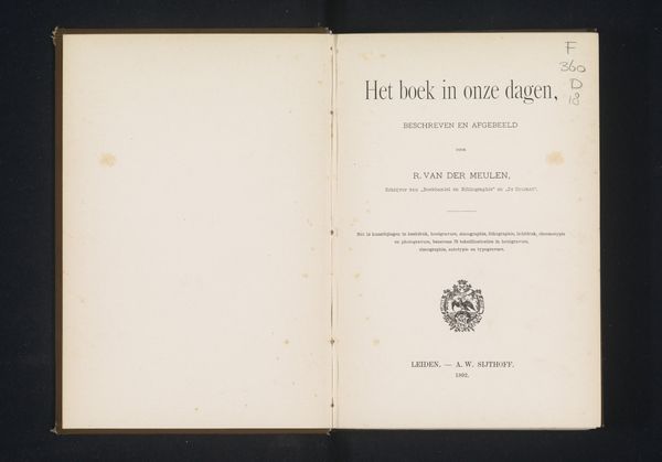 Curator: Here we have the title page of "Das Buch von der Königin Luise," or "The Book of Queen Louise," dating back to 1883, the work of Georg Horn. It’s a striking example of typography from the late 19th century. Editor: It strikes me immediately as quite austere. The off-white background and simple border give it a formal, almost academic feel, but the typography itself introduces some nice contrasting elements. Curator: Indeed. Queen Louise held a particular importance in German collective memory, representing a certain kind of stoic, nationalistic virtue, which the book sought to commemorate. How do you feel that narrative relates to what the artist achieves here? Editor: Well, in terms of symbolism, the use of the Blackletter font, or "gothic script", gives the lettering a weighty presence, rooting it in a historical German identity and a medieval aesthetic that aligns perfectly with Queen Louise's romanticized image. I’m interested in this connection between form and message. Curator: The choice of typography certainly emphasizes this, harkening back to a perceived golden age. If you look closer, there’s a real duality presented in the font. Note, for example, the intertwined foliage which merges the organic with the more rigid structure of the font itself. Editor: I also see a kind of quiet rebellion against industrialization. Hand-drawn elements within typography push back against mass production and the loss of unique craftsmanship. The serifs and swashes remind us that this was made by human hands. It embodies a yearning for a past perhaps idealized, but undeniably resonant. Curator: Absolutely. The late 19th century witnessed a surge in nationalistic sentiment, and printing became a key way of disseminating such values, visually anchoring a shared past to create unity. It presents a clear example of using imagery to craft identity. Editor: Examining this work offers a valuable glimpse into how design choices—consciously or unconsciously—reinforce larger cultural and political narratives. It pushes us to think about how art actively contributes to constructing identity and nationhood. Curator: It encourages us to think of graphic design itself as an active agent in the building of cultural narratives and national projects. Editor: Exactly. This seemingly simple title page encapsulates complex ideas about identity, nationhood, and the relationship between history and modernity, providing a deeper context that challenges a simplified vision of Queen Louise.