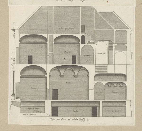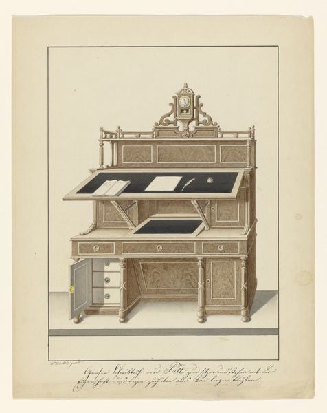 Editor: Here we have "Begraafplaats van de familie Van der Capellen in Gorssel," a pencil drawing by Daniël (I) Veelwaard, created around 1788. It’s interesting how formal and ordered the composition is; everything seems carefully measured and placed. What do you make of its geometry and arrangement? Curator: Indeed, the architectural rendering possesses a compelling austerity, doesn't it? The organization adheres rigorously to principles of Neoclassical design. Notice the orthogonal lines and the clear delineation of space. How does the contrast between the solid geometric forms and the implied vastness beyond contribute to its impact? Editor: Well, I find that tension really interesting, almost as though it is presenting history or remembrance through an imposed, structured framework. Does this starkness represent anything else to you? Curator: Consider how the artist uses line weight and precise details in the brickwork and monument. We can interpret the visual vocabulary in terms of signs and structures. Can the visual presentation give clues to the society that commisioned the artwork? How does this relate to formalist artistic intention and semiotics of space? Editor: That’s fascinating. I hadn't considered it in such a structured way before, thinking about the composition as a visual language itself and also a reflection of society! Curator: Precisely. These geometric structures, lines, and arrangement offer a very distilled view of how the architecture presents meaning, and what meaning we assign the formal characteristics as signs to what we understand of the work. Editor: This focus on line and form reveals a depth I hadn't noticed before; seeing this through a formalist lens gives new dimension.