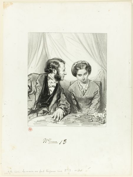 This print, "Jongeman leest brief" or "Young man reading letter," was created by Paul Gavarni. It's a lithograph, a printmaking process that relies on the chemical repulsion between oil and water. The image is drawn on a stone or metal plate with a greasy substance, then inked. The ink adheres only to the drawn areas, and the print is made. Look closely, and you’ll notice the tremendous detail Gavarni achieved with this technique, from the textures of the men's clothing to the ornate details of the sofa. Lithography was a relatively new medium in the 19th century, enabling artists like Gavarni to produce images quickly and in large quantities. This reflects the rise of consumer culture and mass media, where images could be widely distributed and consumed. Consider also how this print relates to the world of labor. It highlights not only the labor of the artist, but also, perhaps, the lives of leisure enjoyed by the well-to-do. It invites us to consider the social dynamics of the time.