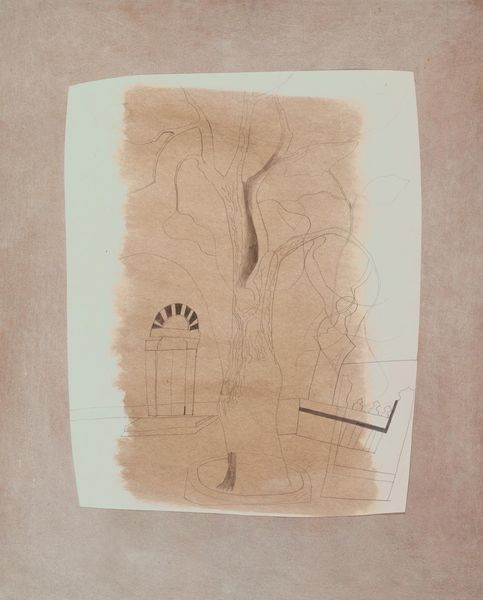 Curator: Before us is Petros Malayan's 1973 artwork, "Fromborg, Kopernik Tower, Poland," rendered in ink, watercolor, and drawing on paper, a mixed-media piece creating a captivating landscape. Editor: My first impression is one of brooding strength, the monochromatic palette casting a shadow, a certain stillness in the silhouette of architecture against the implied wilderness. Curator: Malayan created this cityscape during a period when Poland was under Soviet influence. We have to read this not simply as an innocent portrayal but to ask if this old construction may hold connotations of Polish national identity. Editor: Absolutely, the tower's formidable architecture certainly recalls centuries of power and, perhaps, defiance. Visually, the tower itself could also represent endurance, and also echoes with folklore and heraldry. Its shadow stretches back into the historical depths, perhaps hinting at secrets it guards. Curator: And the very method of the piece is important. The mixing of media gives it a quality which almost resists specific reading. I can definitely imagine it resonating for those seeking continuity during political turmoil. Its lack of strong color acts, to my mind, as an echo of restraint, resilience through bleak times. Editor: I find it intriguing how the almost skeletal trees contrast against the solid presence of the tower. They add a feeling of vulnerability to the structure. Do they symbolize vulnerability alongside enduring strength, and how is Malayan playing with a dialectic of symbolism here? Curator: I think that by including skeletal trees, Malayan comments on cycles of life, ruin, and eventual, stubborn rebuilding. This landscape becomes about the enduring spirit rather than the specifics of political constraint, or even simply just about old architecture. Editor: It speaks to the past but seems conscious of a persistent future, or perhaps hope amid oppressive eras. The enduring image is how a landmark becomes not only architectural, but powerfully symbolic of what we hold to despite all adversities. Curator: Precisely. Malayan presents the essence of place beyond physical boundaries. The political commentary then resides less within obvious representation, and becomes the spirit we invest within it. Editor: Yes, I'm walking away with a renewed understanding of how a cityscape holds a quiet history that resonates well beyond architectural detail.