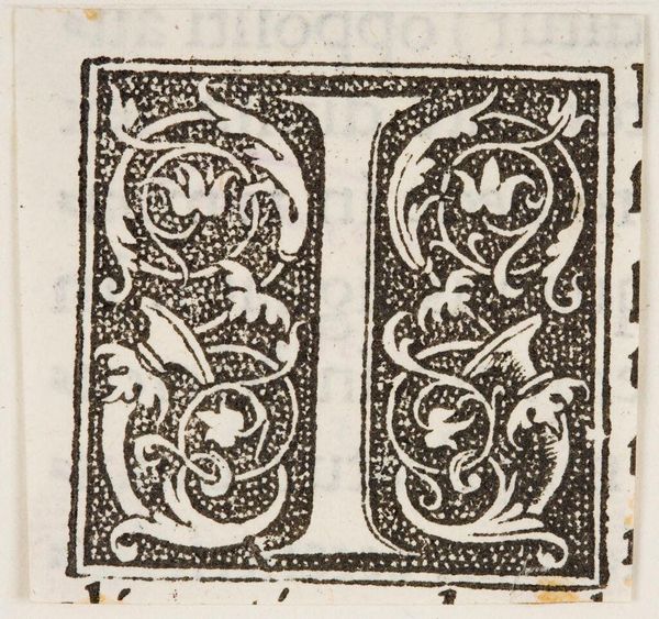 Editor: Here we have "Capital T" by an anonymous artist. The letter itself is quite striking. What can you tell me about the composition? Curator: Note the dynamic interplay of positive and negative space. The boldness of the letterform contrasts with the delicate, organic ornamentation. The anonymous artist masterfully balances these elements, creating visual tension. The stippled background also adds texture. Editor: I see what you mean about the stippling. It creates a nice contrast with the smooth lines of the letter. So, the artist is playing with texture and contrast to create a visually compelling piece. Thanks! Curator: Indeed. A fine example of form dictating function and beauty.